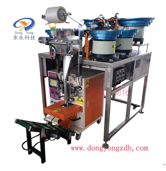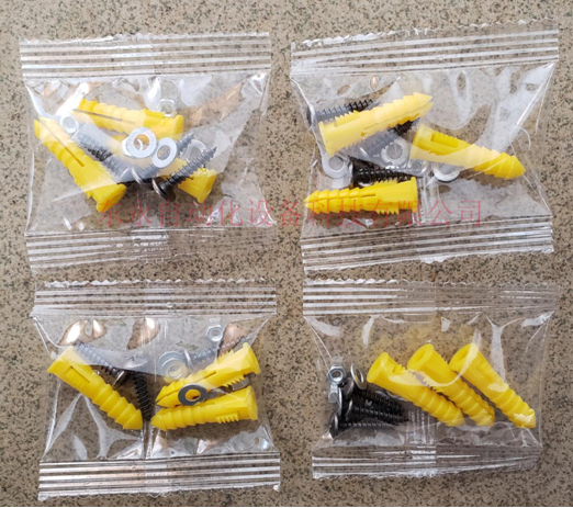 1、東永自動(dòng)化自主研發(fā)的這款背封螺絲包裝機(jī)特別適用于電器、電子、燈飾、家居裝飾等的零件膠體、塑料件、螺絲、螺母等等的組合包裝。