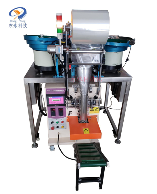 東永自動(dòng)化自主研發(fā)的全自動(dòng)五金零配件包裝機(jī)針對(duì)物料量身定做優(yōu)質(zhì)不銹鋼精密振動(dòng)盤,進(jìn)口直線送料器進(jìn)行排列供料,精密的計(jì)數(shù)控制裝置,確保每袋準(zhǔn)確無誤,同時(shí)自動(dòng)顯示包裝數(shù)量,可方便的統(tǒng)計(jì)出機(jī)器的日工作量,先進(jìn)的工控系統(tǒng)沒故障自停機(jī),自報(bào)警,自診斷,使用安全,簡(jiǎn)單。